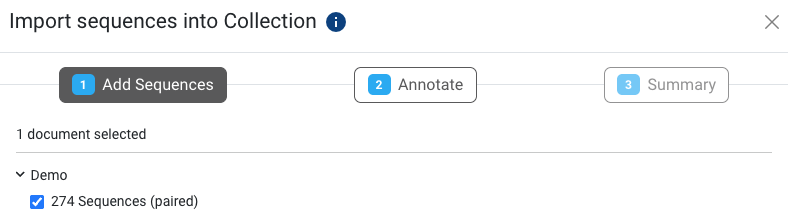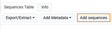 Sequences can be added to a Collection directly via the Add Sequences button in the Collection's Sequences Table.